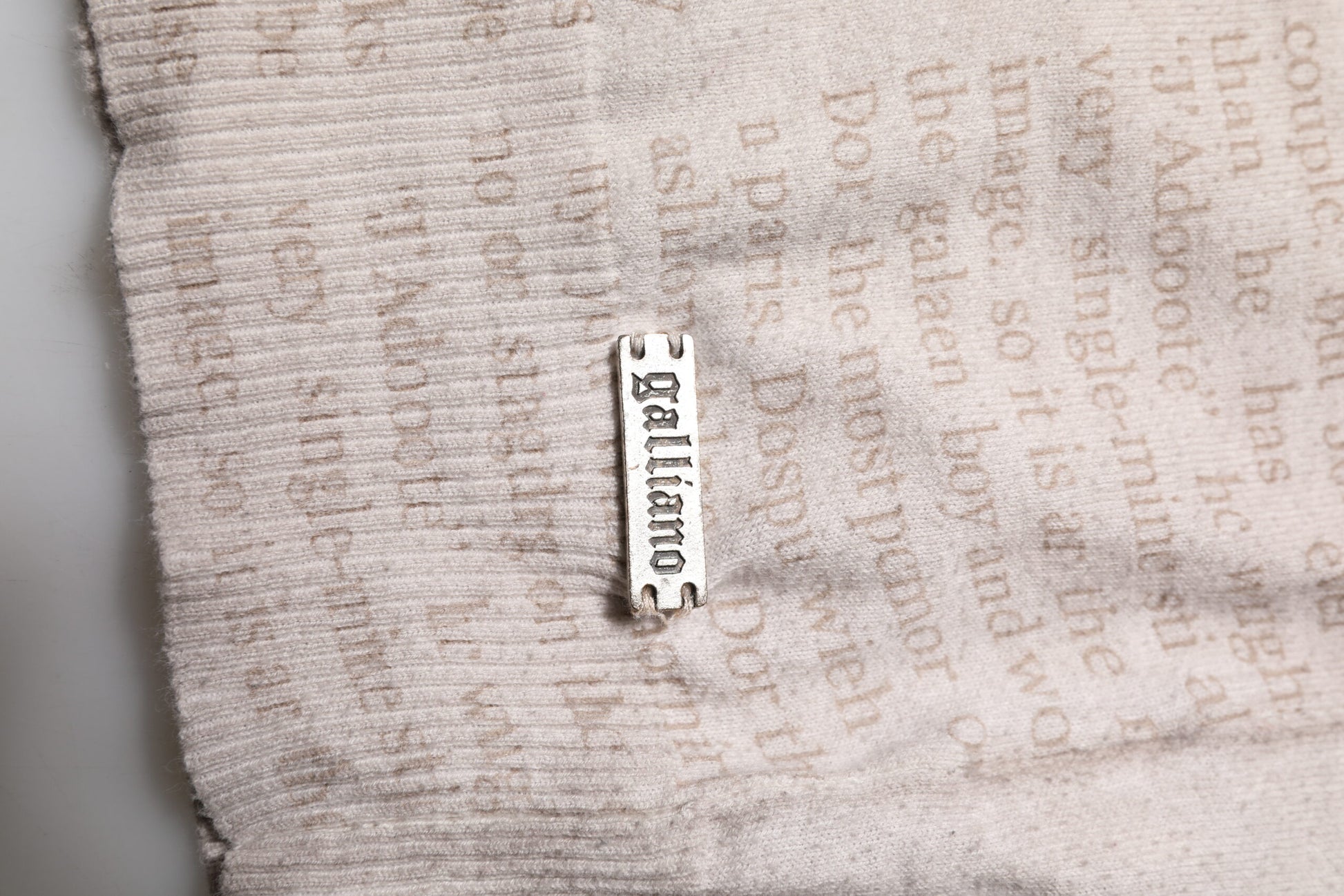 Gorgeous, 100% Authentic Galliano beige sweatshirt featuring a bold printed logo, classic round neckline, and long sleeves. Stylish and comfortable, this piece is perfect for casual wear.