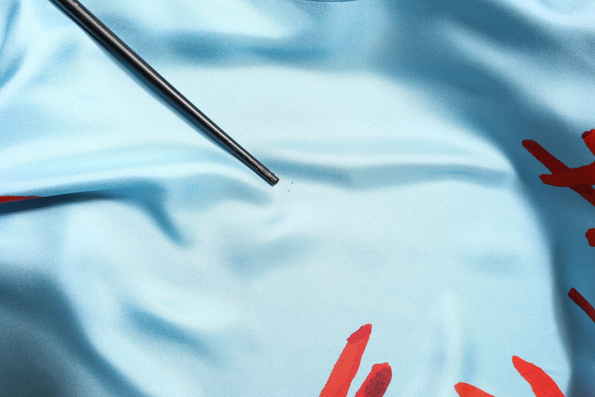 This item has a minor defect, there are stains on the back side (see pictures for details).