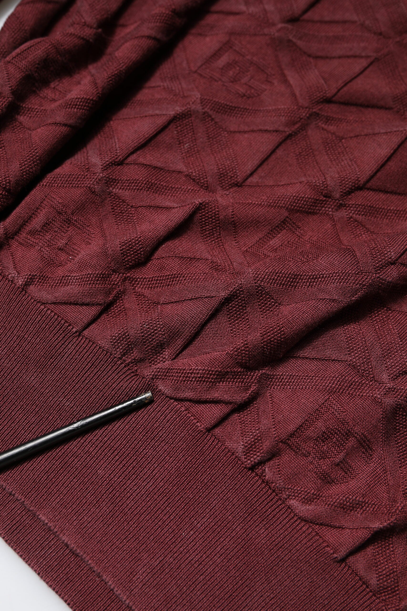 Bordeaux Silk Knit Crew Neck Pullover Sweater