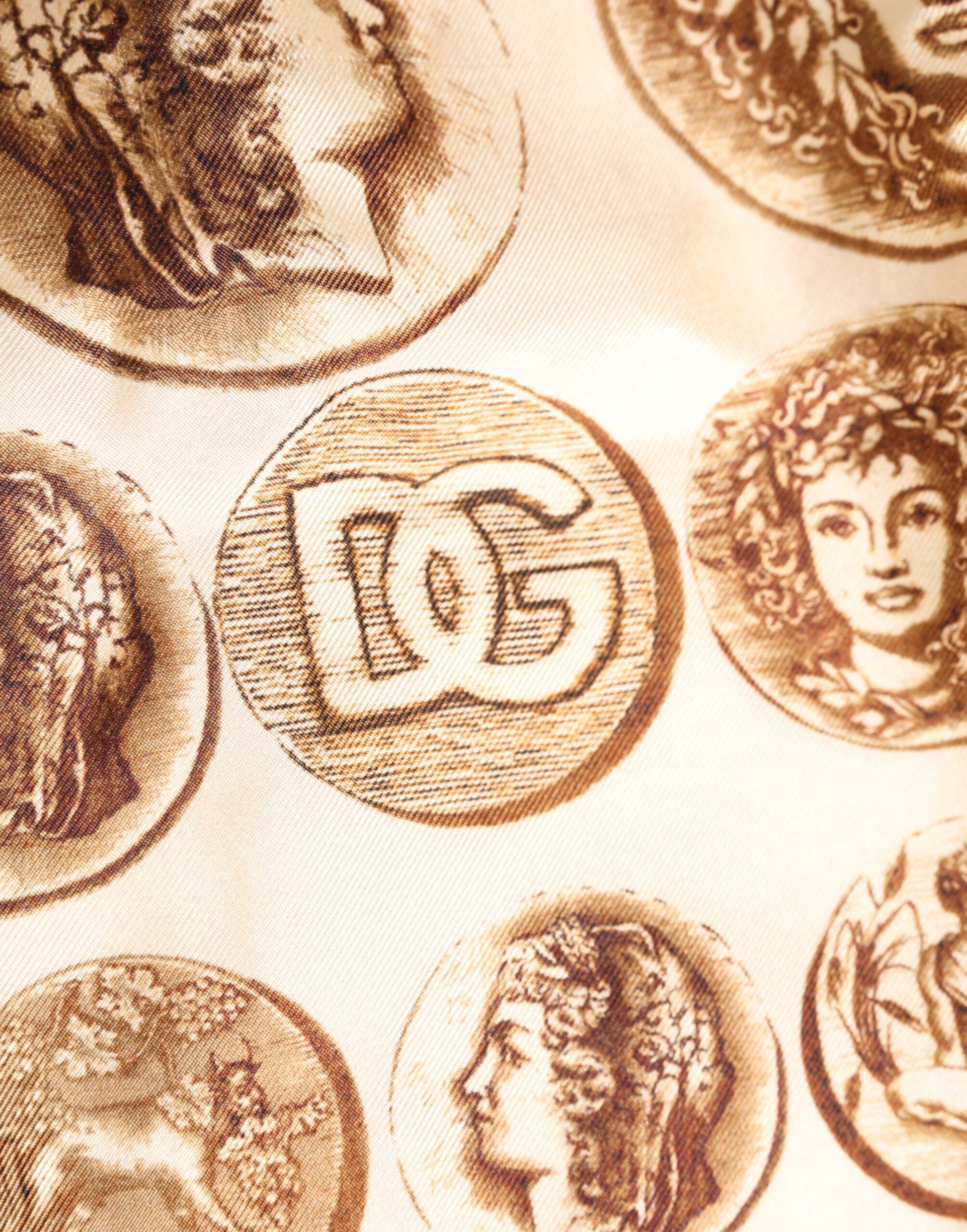 Crafted from premium lightweight silk with a ancient coin print design. Features an elastic waistband comfortable fit. Perfect for poolside lounging or beachwear.