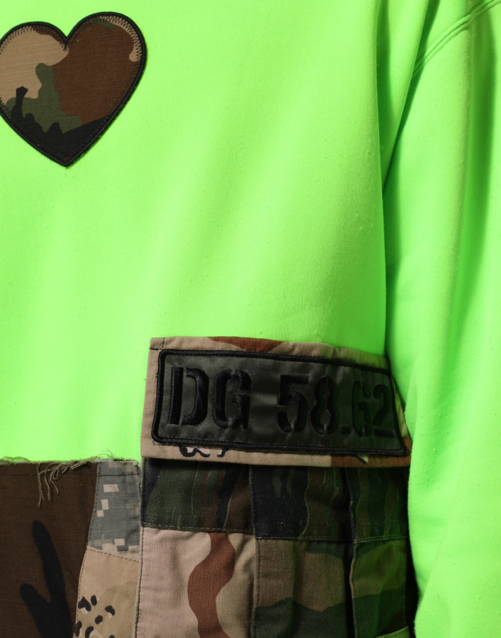 Gorgeous preowned, 100% Authentic Dolce & Gabbana sweatshirt is crafted from soft green cotton and features a playful patchwork heart motif at the chest. Designed with a classic crew neck, long sleeves, and ribbed cuffs and hem, it combines casual comfort with signature Italian style—perfect for elevated streetwear, weekend wear, or layering for a stylish, relaxed look.
