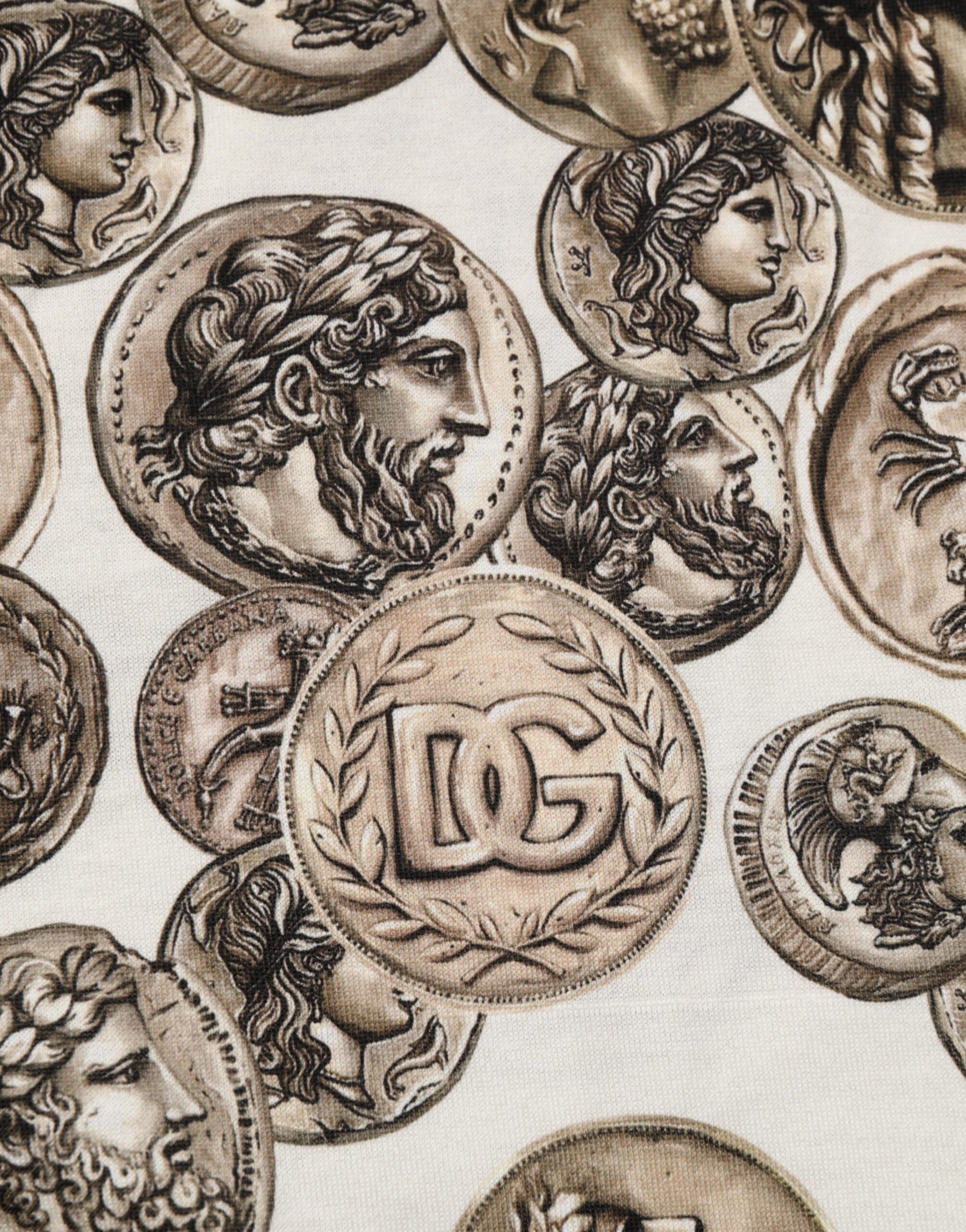 Gorgeous brand new, 100% Authentic Dolce & Gabbana white cotton crew-neck T-shirt, featuring a distinctive coin motif print—some versions include the D&G logo on the front. Crafted in Italy for a regular or oversized fit, this tee blends timeless style with a touch of luxury.