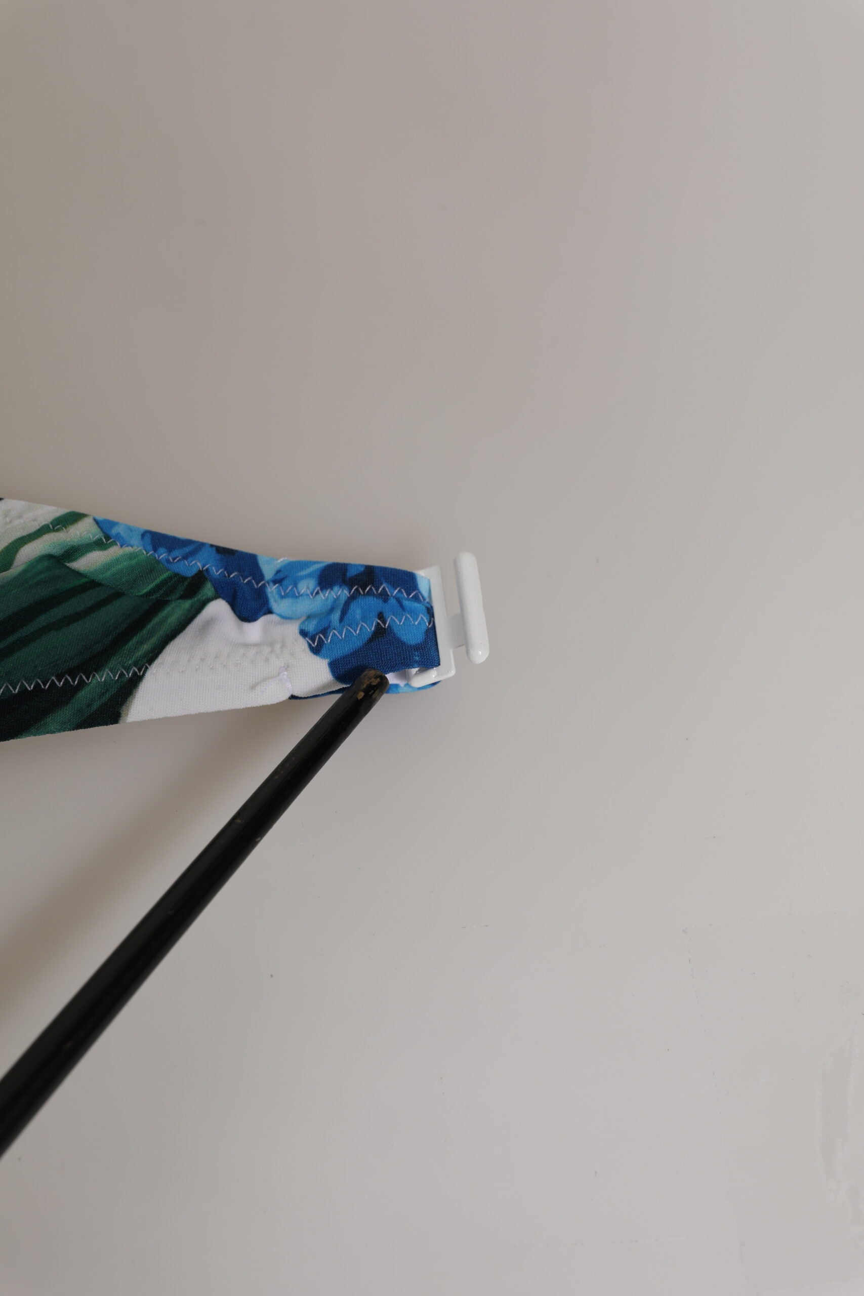 Gorgeous brand new, 100% Authentic Dolce & Gabbana two-piece swimsuit features a crisp white base beautifully decorated with vibrant floral prints. Complete with a matching top and bottom, it offers a chic and romantic look for beach or poolside wear.