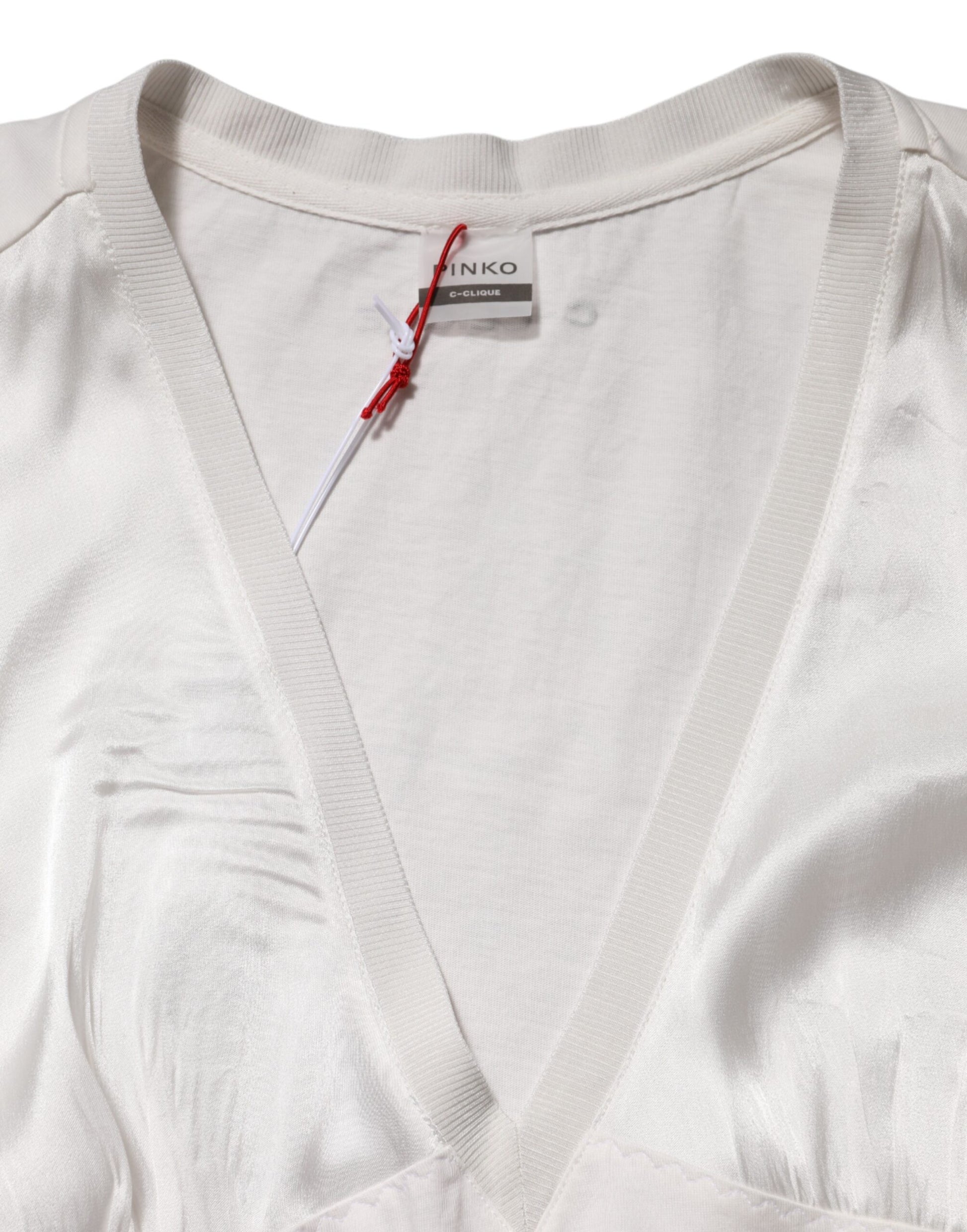 Gorgeous brand new with tags, 100% Authentic PINKO Tops.This elegant sleeveless blouse features a deep V-neckline, delicate lace trim on the shoulders, and a silk-blend fabric that adds a luxurious touch. Perfect for both casual and sophisticated looks.